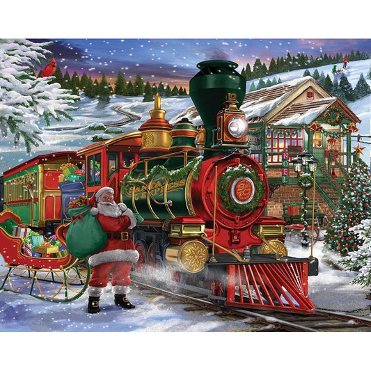 Santa Express Black Modern Wood Framed Art Print with Double Matting by Bigelow Illustrations- Exclusive