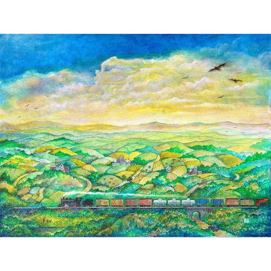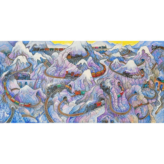 Stave Trains Black Modern Wood Framed Art Print with Double Matting by Bell, Bill