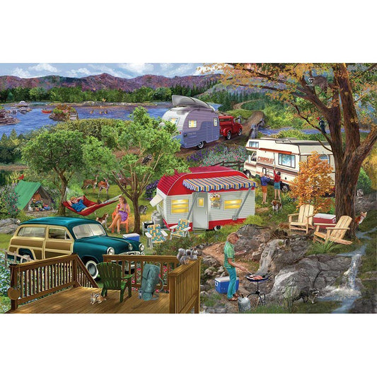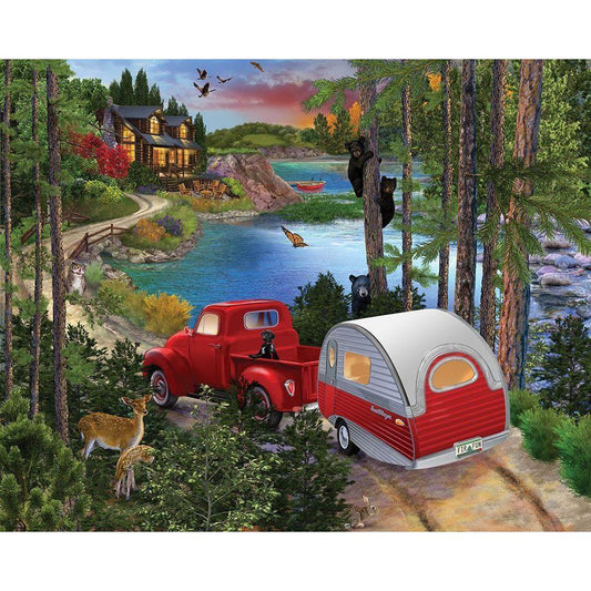 Mountain Camper Black Modern Wood Framed Art Print with Double Matting by Bigelow Illustrations- Exclusive