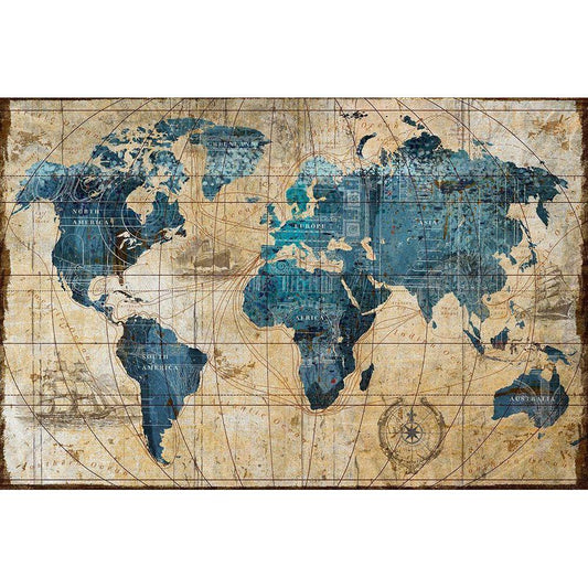 Pencil Vs Camera - World Map Black Modern Wood Framed Art Print with Double Matting by Heine, Ben