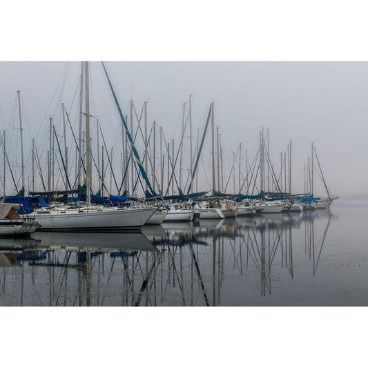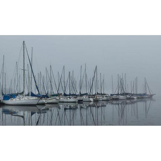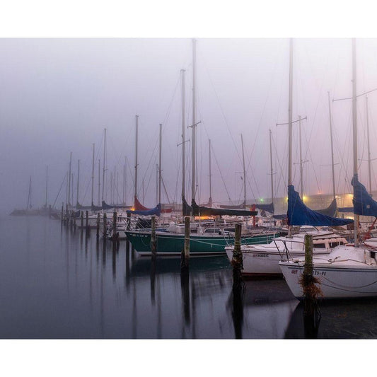 Foggy Marina II Black Modern Wood Framed Art Print with Double Matting by Head, Danny