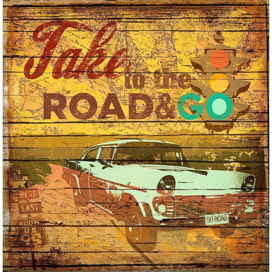 Take to the Road Black Modern Wood Framed Art Print with Double Matting by Art Licensing Studio