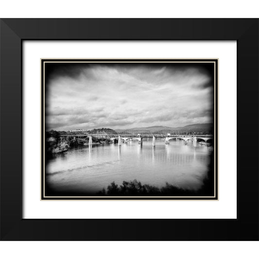 Loc Market St Bridge BW Holga Black Modern Wood Framed Art Print with Double Matting by Lee, Rachel