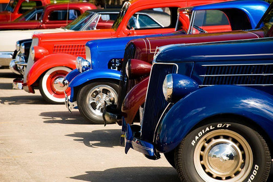 Classic Car Show White Modern Wood Framed Art Print with Double Matting by Vintage Photo Archive