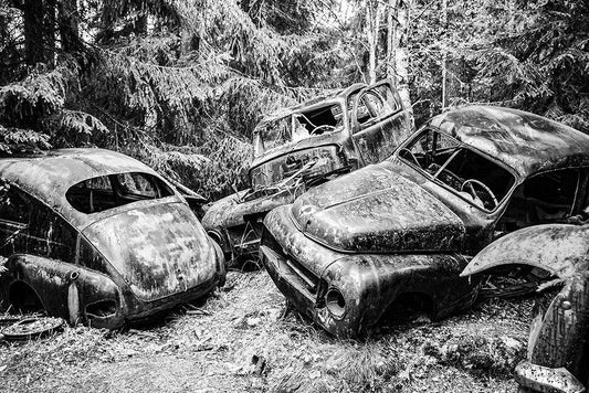 Rusty Classic Car White Modern Wood Framed Art Print with Double Matting by Vintage Photo Archive