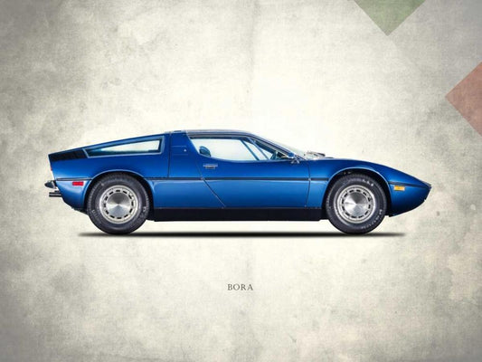 Maserati Bora 1973 White Modern Wood Framed Art Print with Double Matting by Rogan, Mark