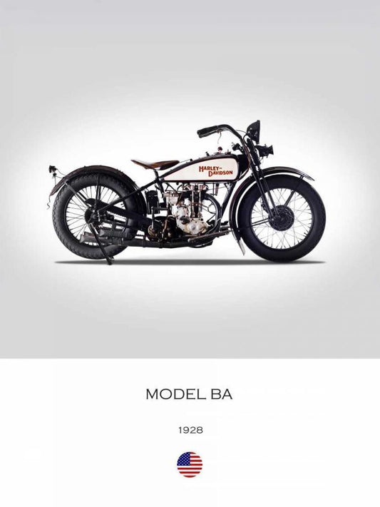 Harley Davidson Model BA 1928 White Modern Wood Framed Art Print with Double Matting by Rogan, Mark