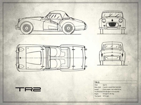 Triumph TR2 White White Modern Wood Framed Art Print with Double Matting by Rogan, Mark