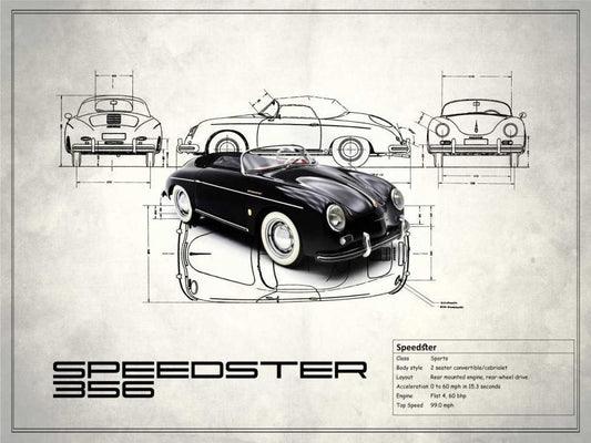 Porsche Speedster 1959 White Modern Wood Framed Art Print with Double Matting by Rogan, Mark