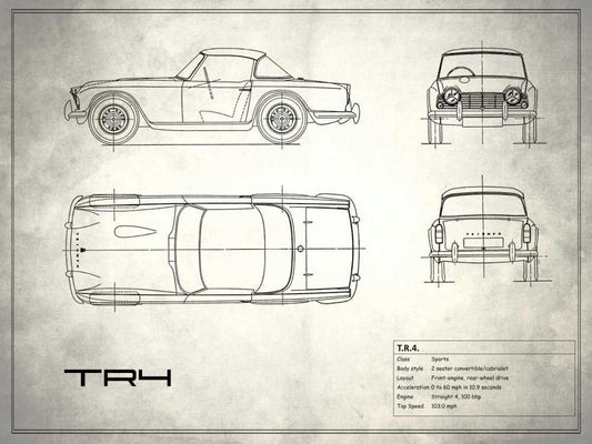 Triumph TR4 White White Modern Wood Framed Art Print with Double Matting by Rogan, Mark