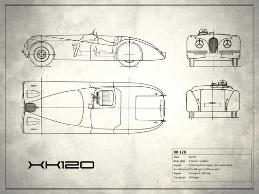 Jaguar XK-120 White White Modern Wood Framed Art Print with Double Matting by Rogan, Mark