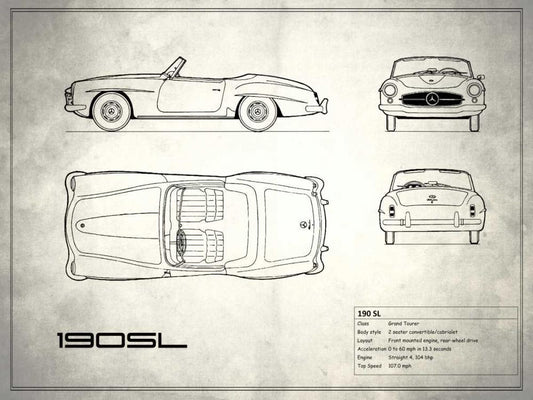 Mercedes 190-SL White White Modern Wood Framed Art Print with Double Matting by Rogan, Mark