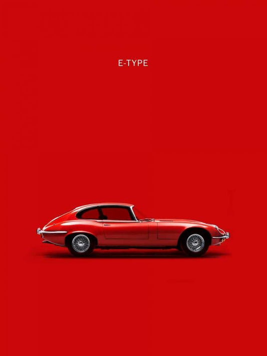 Jaguar E-Type Red White Modern Wood Framed Art Print with Double Matting by Rogan, Mark