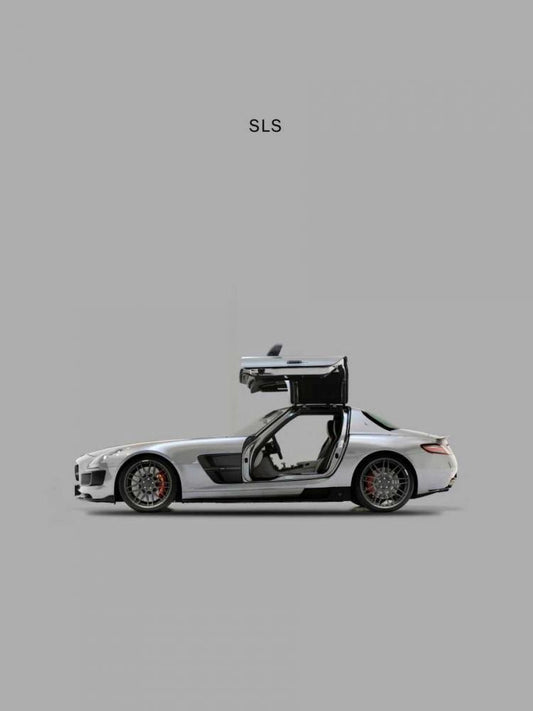 Mercedes SLS Grey White Modern Wood Framed Art Print with Double Matting by Rogan, Mark