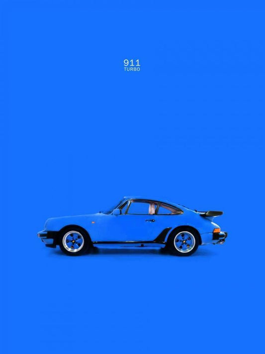 Porsche 911 Turbo Blue White Modern Wood Framed Art Print with Double Matting by Rogan, Mark