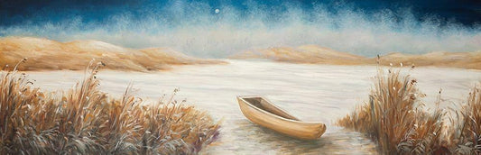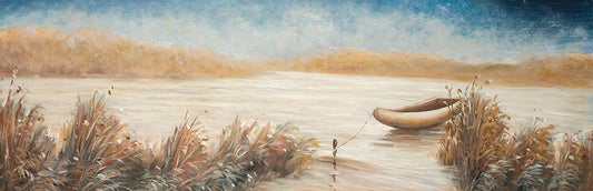 BOAT IN THE MIDDLE OF A SWAMP White Modern Wood Framed Art Print with Double Matting by Atelier B Art Studio