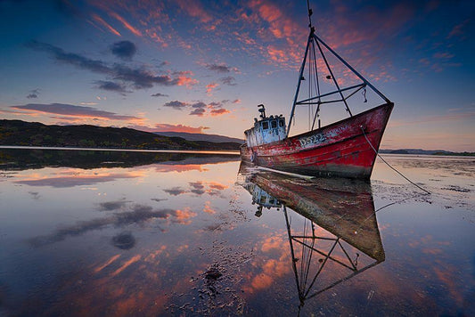 Nets In Sunset White Modern Wood Framed Art Print with Double Matting by Whanset, Saravut