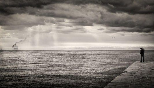The Photographer And The Sea White Modern Wood Framed Art Print with Double Matting by Guarino, Vito