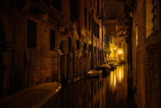 Venice At Night White Modern Wood Framed Art Print with Double Matting by Maier, Norbert
