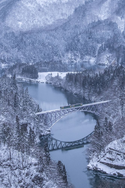 Winter train White Modern Wood Framed Art Print with Double Matting by Aoki, Juri