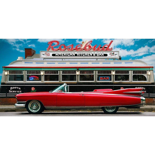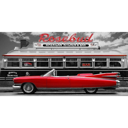 Vintage Beauty and Diner (Red) Black Modern Wood Framed Art Print with Double Matting by Gasoline Images