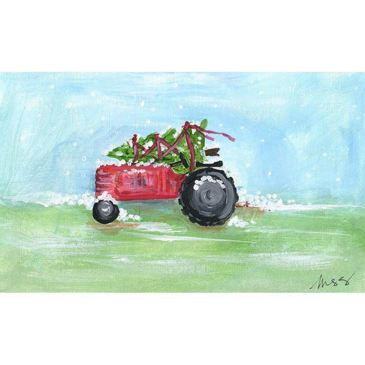 Tractor Christmas Black Modern Wood Framed Art Print with Double Matting by Strong, Molly Susan