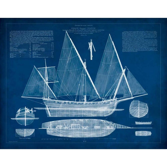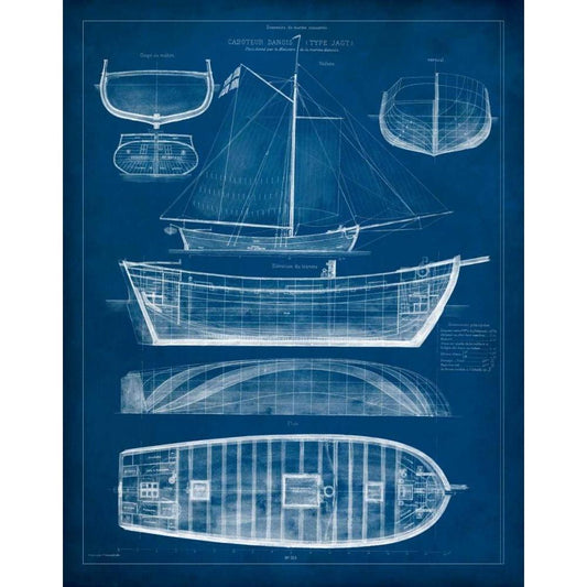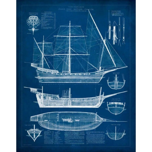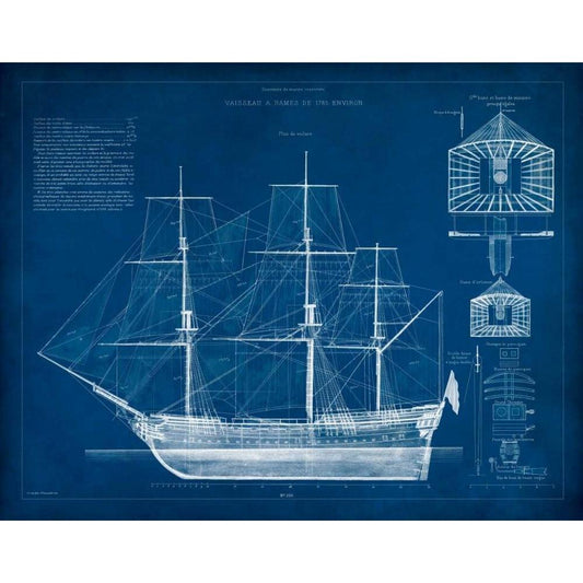 Antique Ship Blueprint I Black Modern Wood Framed Art Print with Double Matting by Vision Studio
