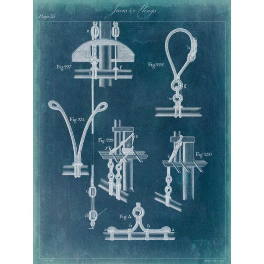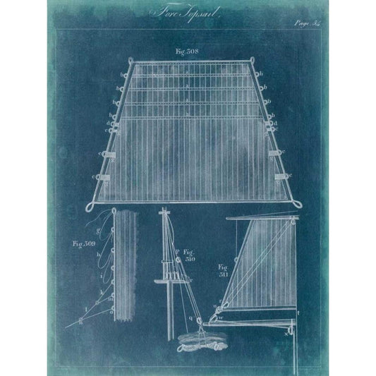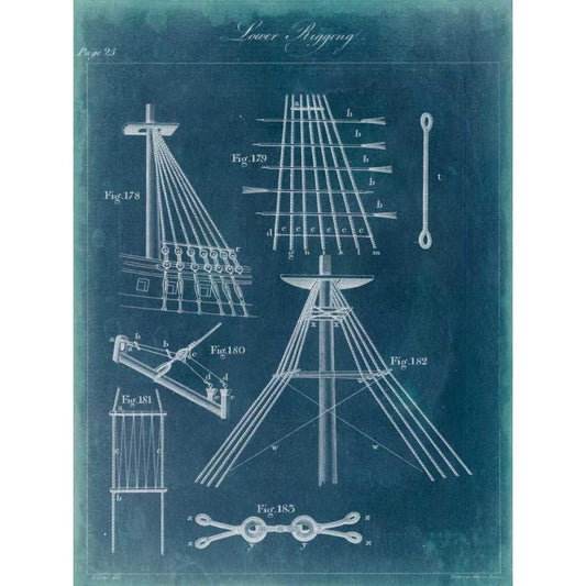 Nautical Detail Blueprint I Black Modern Wood Framed Art Print with Double Matting by Vision Studio