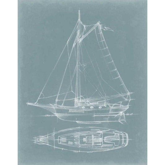 Yacht Sketches I Black Modern Wood Framed Art Print with Double Matting by Harper, Ethan