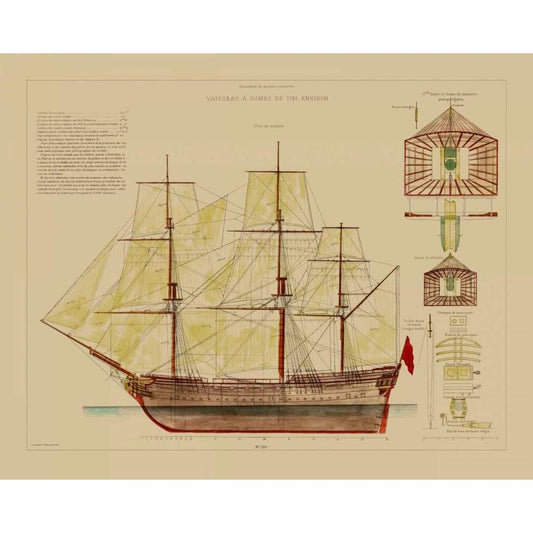 Antique Ship Plan VII Black Modern Wood Framed Art Print with Double Matting by Vision Studio