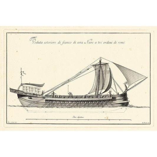 Antique Ship Plan VIII Black Modern Wood Framed Art Print with Double Matting by Vision Studio