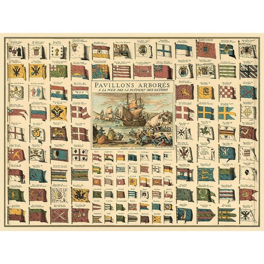 Display of Flags Black Modern Wood Framed Art Print with Double Matting by unknown