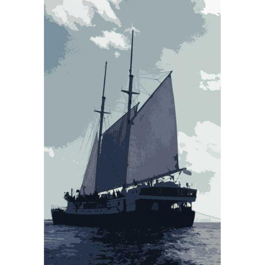 Caribbean Vessel I Black Modern Wood Framed Art Print with Double Matting by Longley, Carolyn