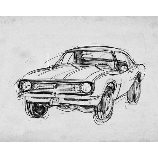 Classic Car Sketch IV Black Modern Wood Framed Art Print with Double Matting by Warren, Annie
