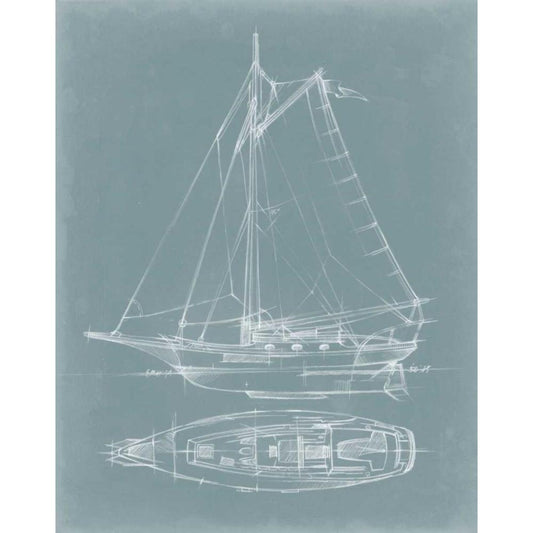 Yacht Sketches I Black Modern Wood Framed Art Print with Double Matting by Harper, Ethan