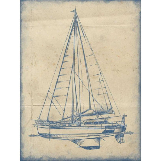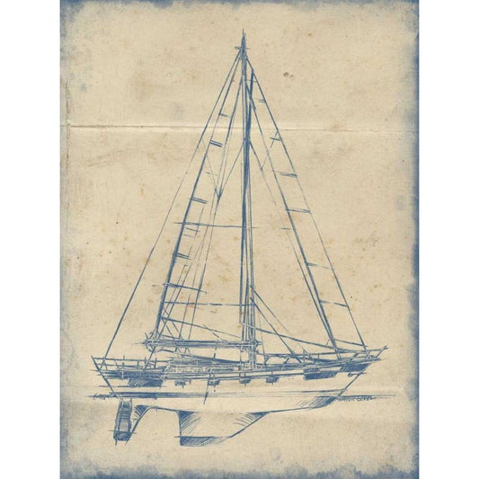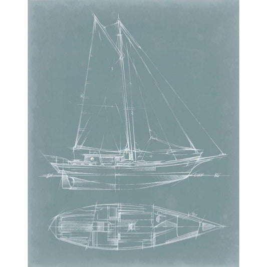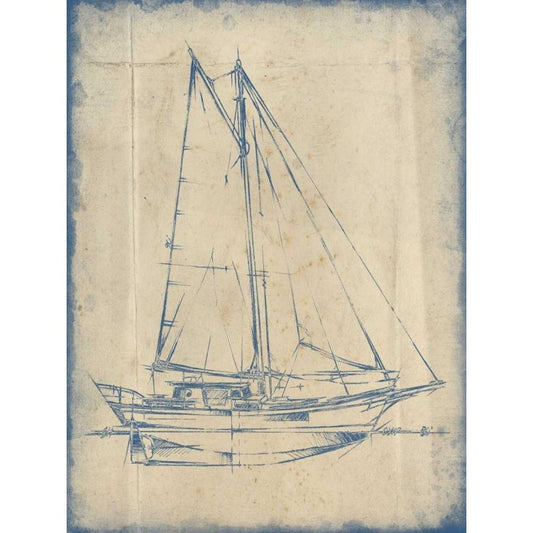Yacht Blueprint I Black Modern Wood Framed Art Print with Double Matting by Harper, Ethan