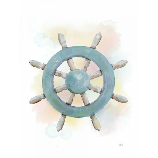 Watercolor Ships Wheel Black Modern Wood Framed Art Print with Double Matting by Reynolds, Jade