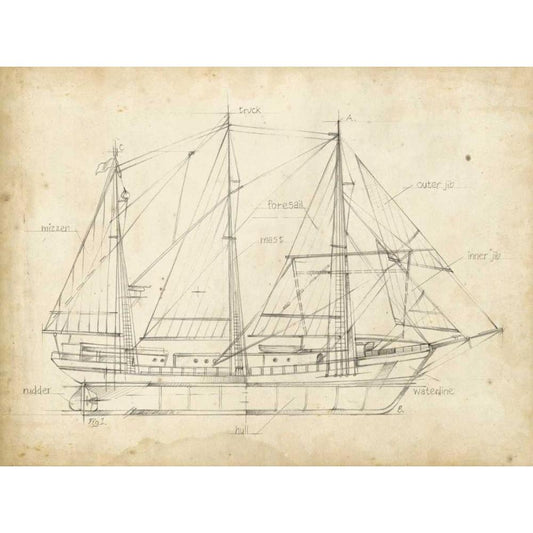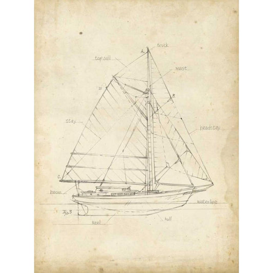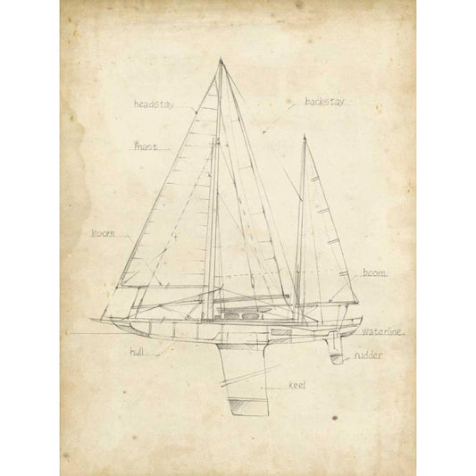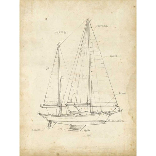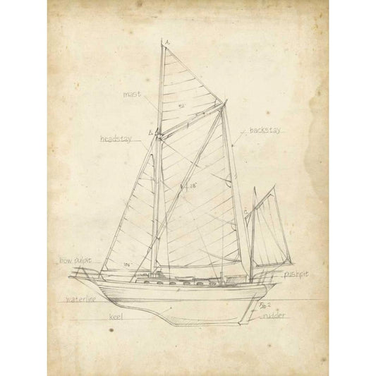 Sailboat Blueprint I Black Modern Wood Framed Art Print with Double Matting by Harper, Ethan