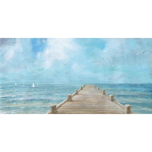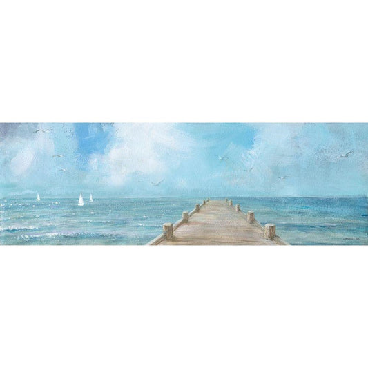 Summer Dock Panorama Black Modern Wood Framed Art Print with Double Matting by Nai, Danhui