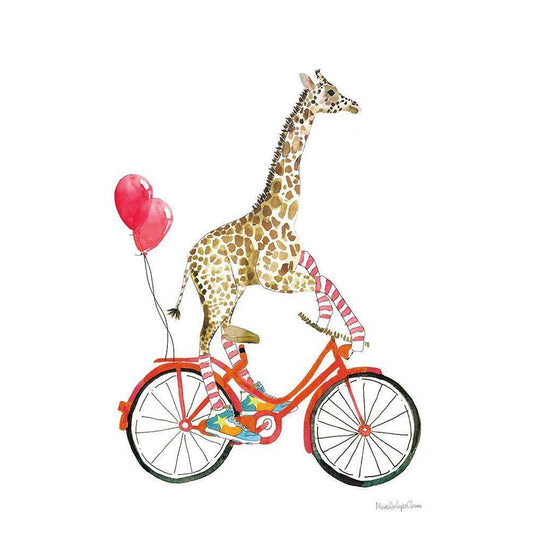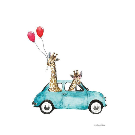 Giraffe Joy Ride I Black Modern Wood Framed Art Print with Double Matting by Charro, Mercedes Lopez