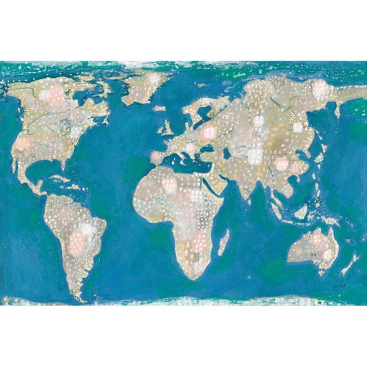 World Map Blush v2 Black Modern Wood Framed Art Print with Double Matting by Paschke, Chris