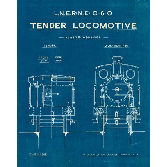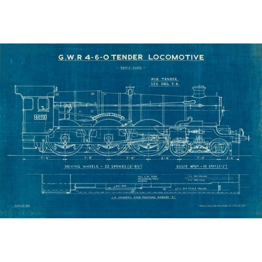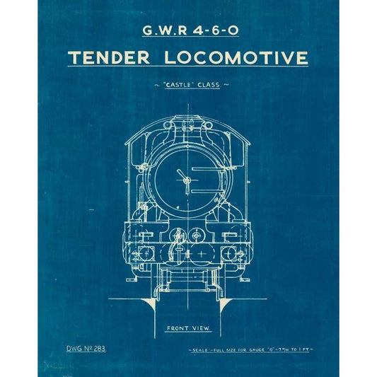 Locomotive Blueprint I Black Modern Wood Framed Art Print with Double Matting by Wild Apple Portfolio