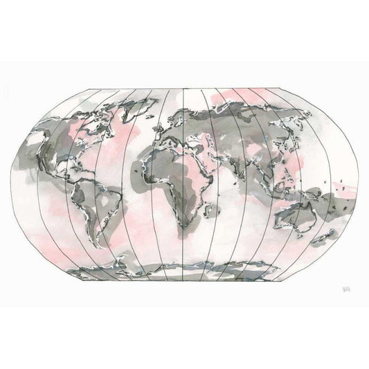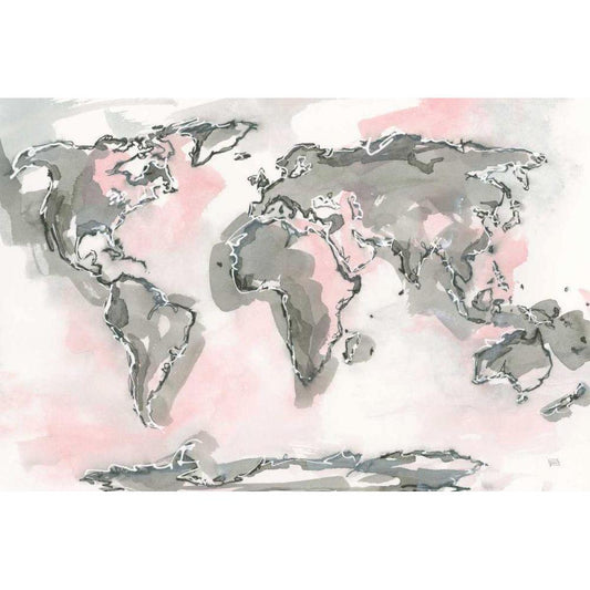 World Map Blush Black Modern Wood Framed Art Print with Double Matting by Paschke, Chris