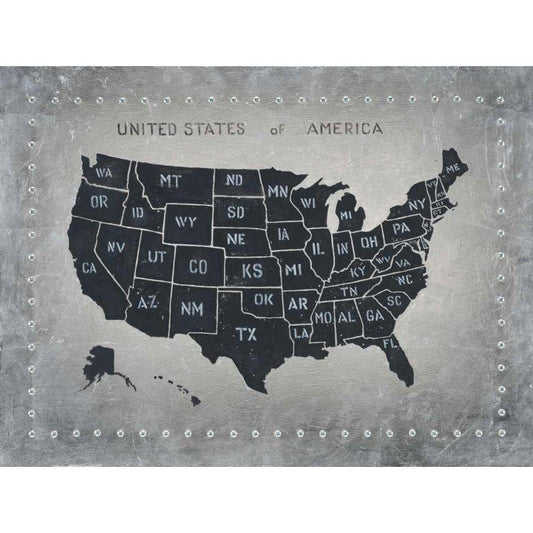 Riveting USA Map Black Modern Wood Framed Art Print with Double Matting by Wiens, James