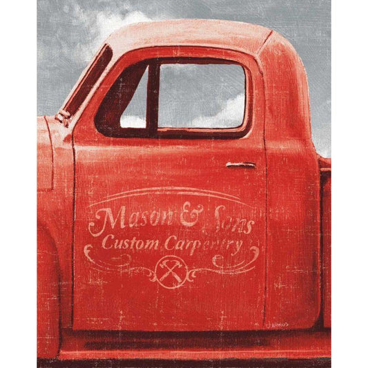 Lets Go for a Ride II Red Truck Black Modern Wood Framed Art Print with Double Matting by Wiens, James
