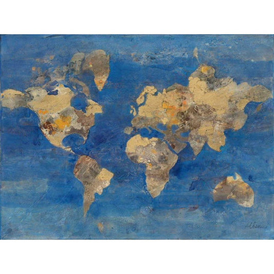 Golden World Black Modern Wood Framed Art Print with Double Matting by Hristova, Albena