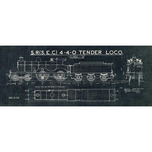 Train Blueprint II Black Black Modern Wood Framed Art Print with Double Matting by Wild Apple Portfolio