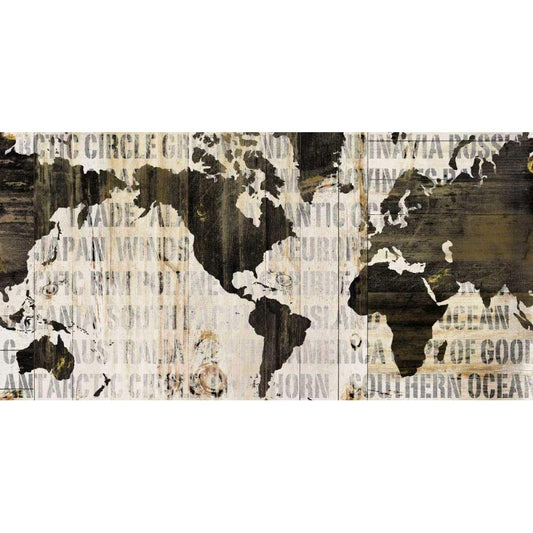 Crate World Map Neutral Black Modern Wood Framed Art Print with Double Matting by Schlabach, Sue