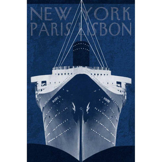 Passage Atlantique Blueprint Black Modern Wood Framed Art Print with Double Matting by Wild Apple Portfolio