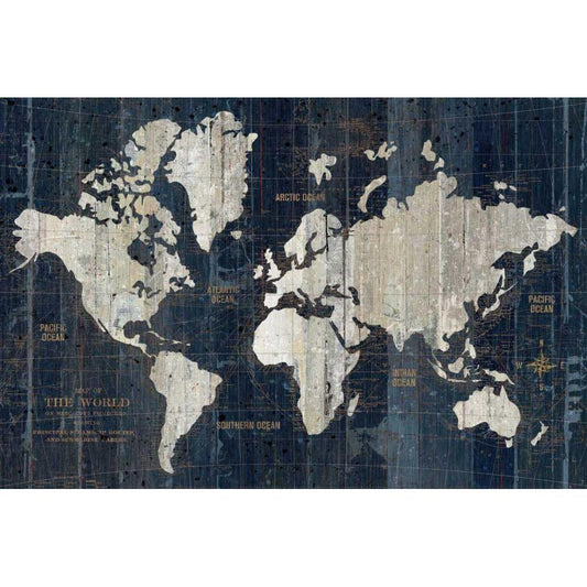 Old World Map Blue Black Modern Wood Framed Art Print with Double Matting by Wild Apple Portfolio